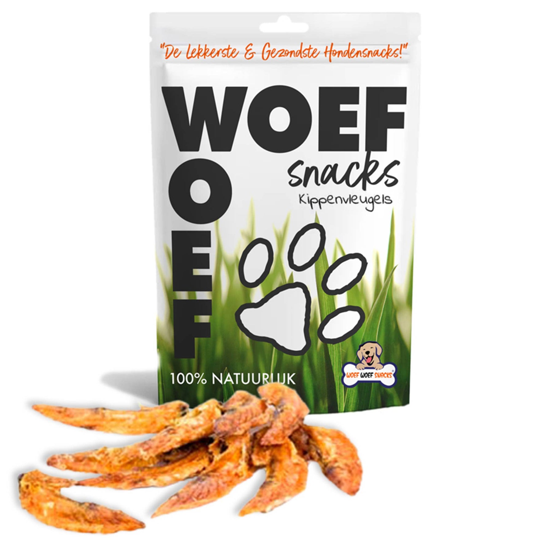 Ein proteinreicher Snack für Hunde. Gut für starke Knochen und Zähne. Unsere knusprigen Hühnerflügel von Woef Woef Snacks sind der ideale natürliche Leckerbissen für Hunde zwischen den Mahlzeiten. Köstlich gesund, ohne zugesetzten Zucker und Getreide.