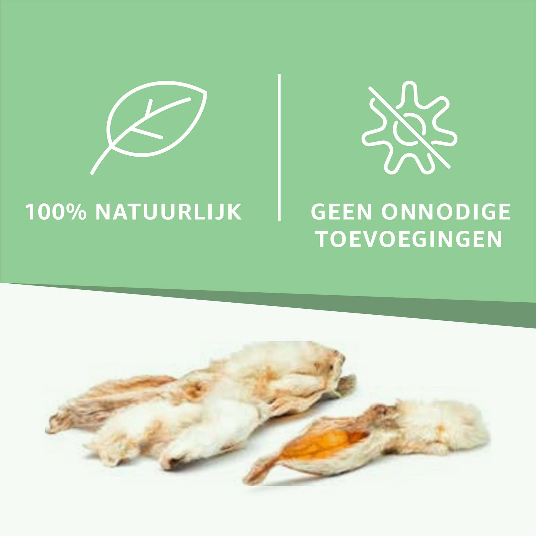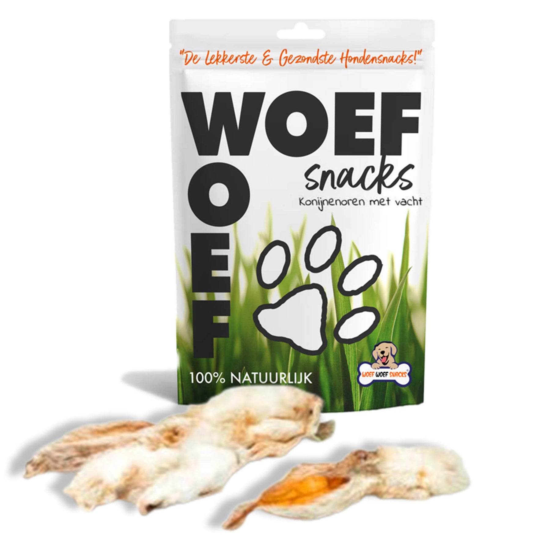 Woef Woef Snacks bietet köstliche Kaninchenohren mit Fell für Hunde, ein natürlicher Kausnack voller Geschmack und Textur, ideal, um treue Vierbeiner zu verwöhnen und gleichzeitig ihren Kauinstinkt zu befriedigen.