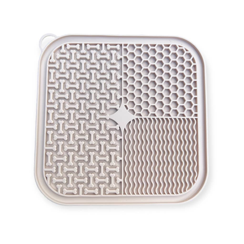 Diese strukturierte Leckmatte kann nach Belieben bestückt werden und sorgt für langanhaltende Beschäftigung und Abwechslung im Hundealltag. Schleckmatten können auch bei Trennungsangst, Stress und Langeweile helfen.